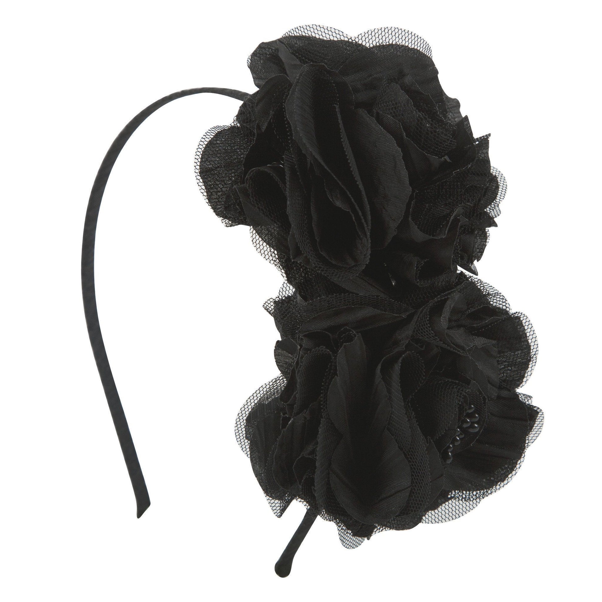 Double flowers ball on a headband.