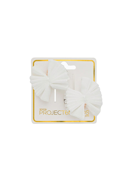 Velvet Pleated Butterfly Bow Clip Set - White (Handmade in the USA!)