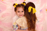 This style matches the Waterfall Piggy Clip Sets so you can coordinate your kids without being overly matchy-matchy (I'm still a fan of matchy-matchy, too, though). The clip is about 6.5" wide.