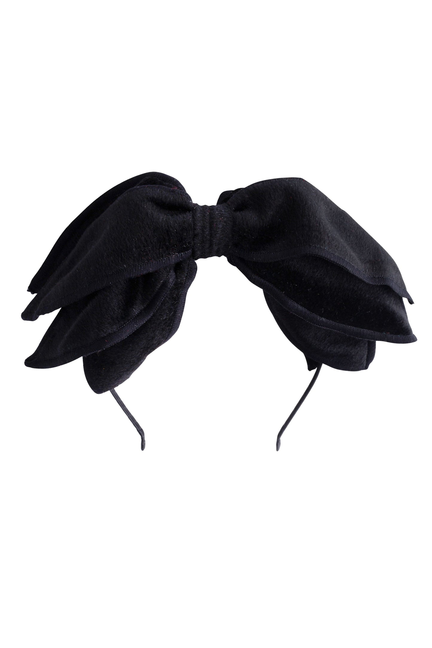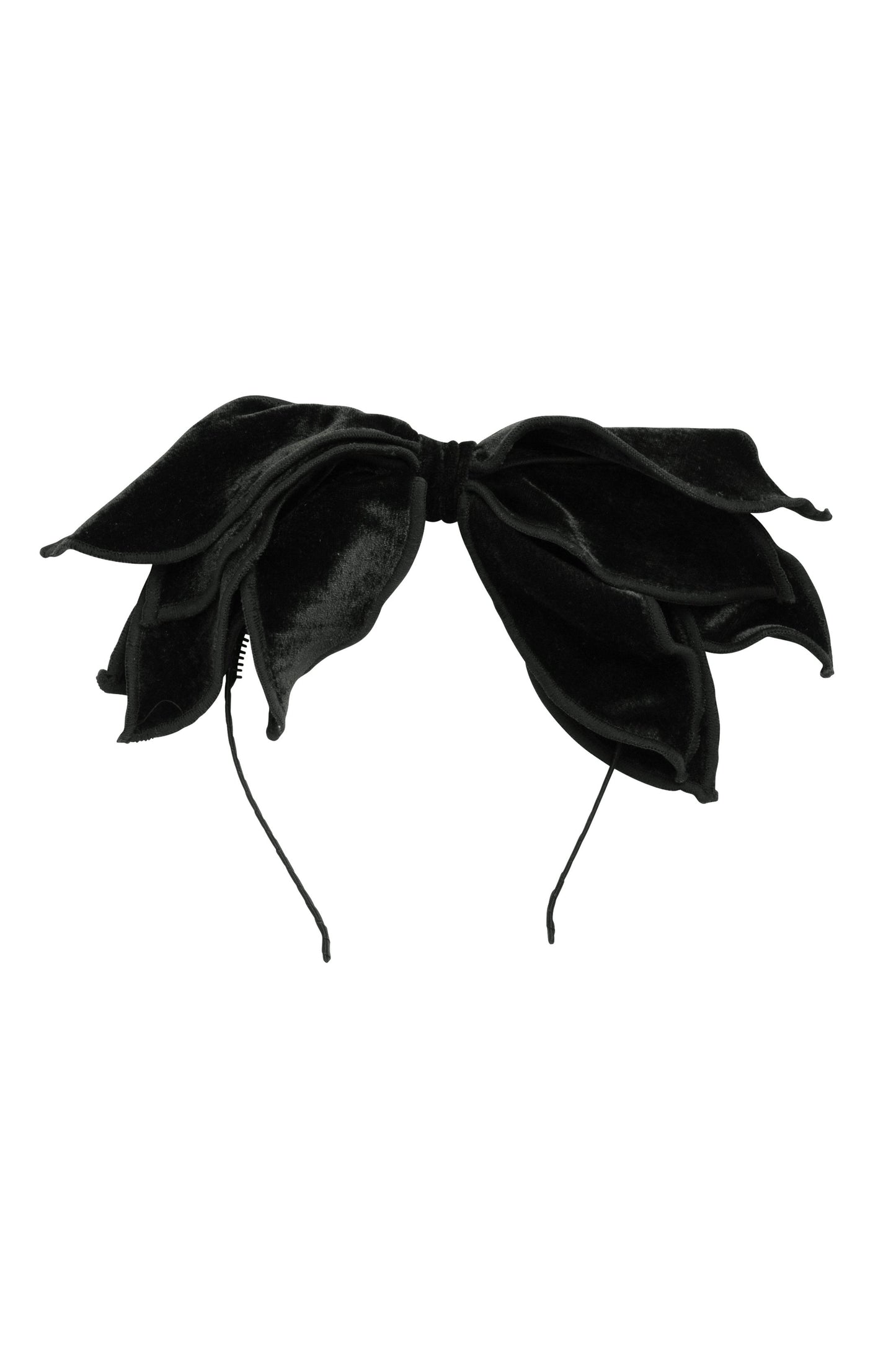 This headband has 5 long petals, each are two layers of velvet sewn together. The sewing details on the edges add so much to the style.