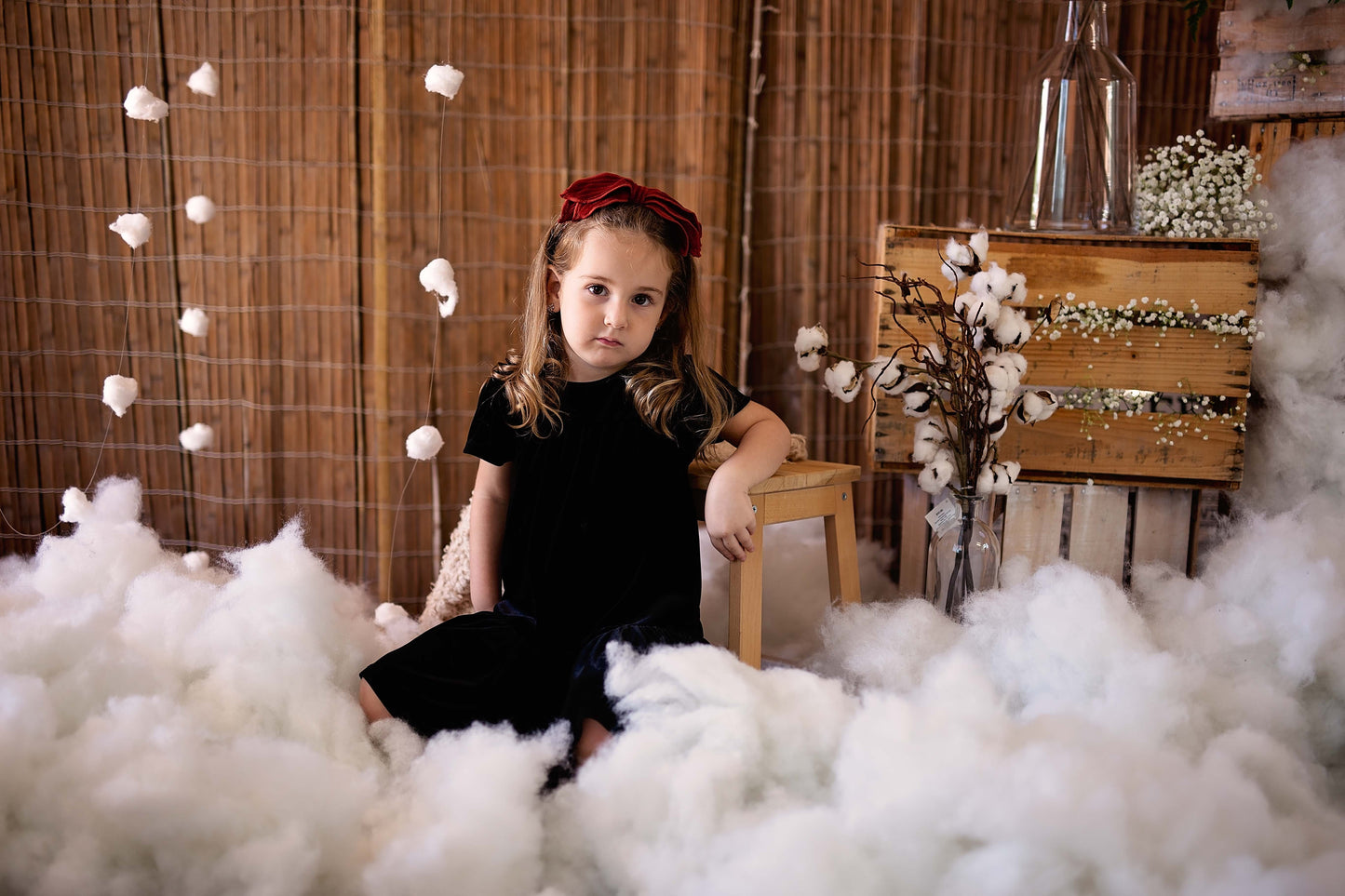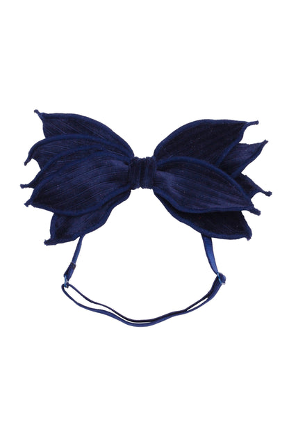 This adjustable wrap has 5 long petals (about 8" from end to end), each are two layers of velvet sewn together. The sewing details on the edges add so much to the style.